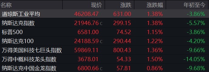 周一(3月23日),好意思股三大指数集体收涨。截止收盘,谈琼斯指数涨1.38%,开盘一度暴涨超1000点,标普500指数涨1.15%,纳斯达克空洞指数涨1.38%。